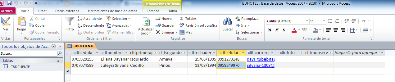 doy doble clic en tblcliente o como tengamos puesto el nombre de nuestras tablas